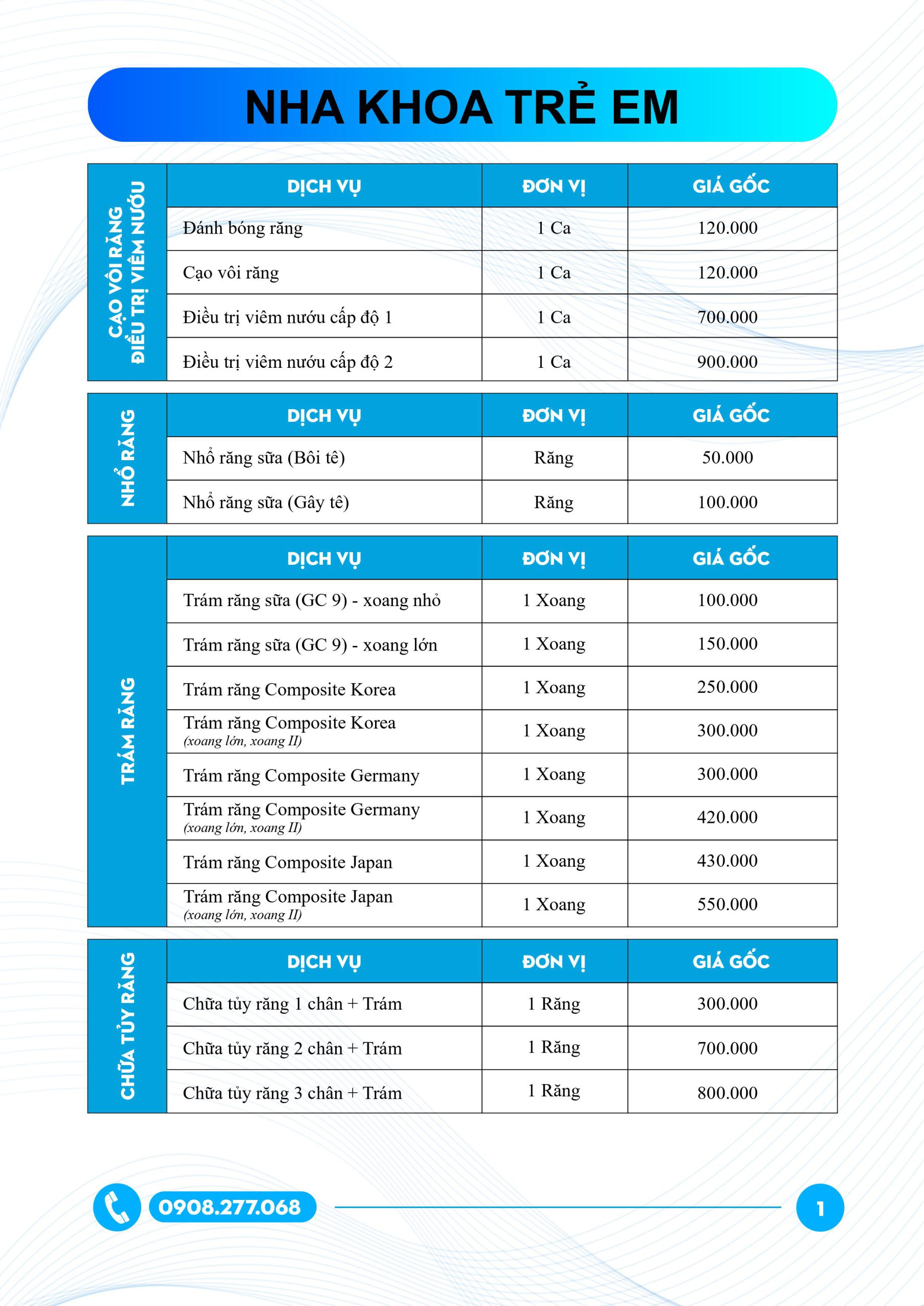 Bảng giá nha khoa cho trẻ em