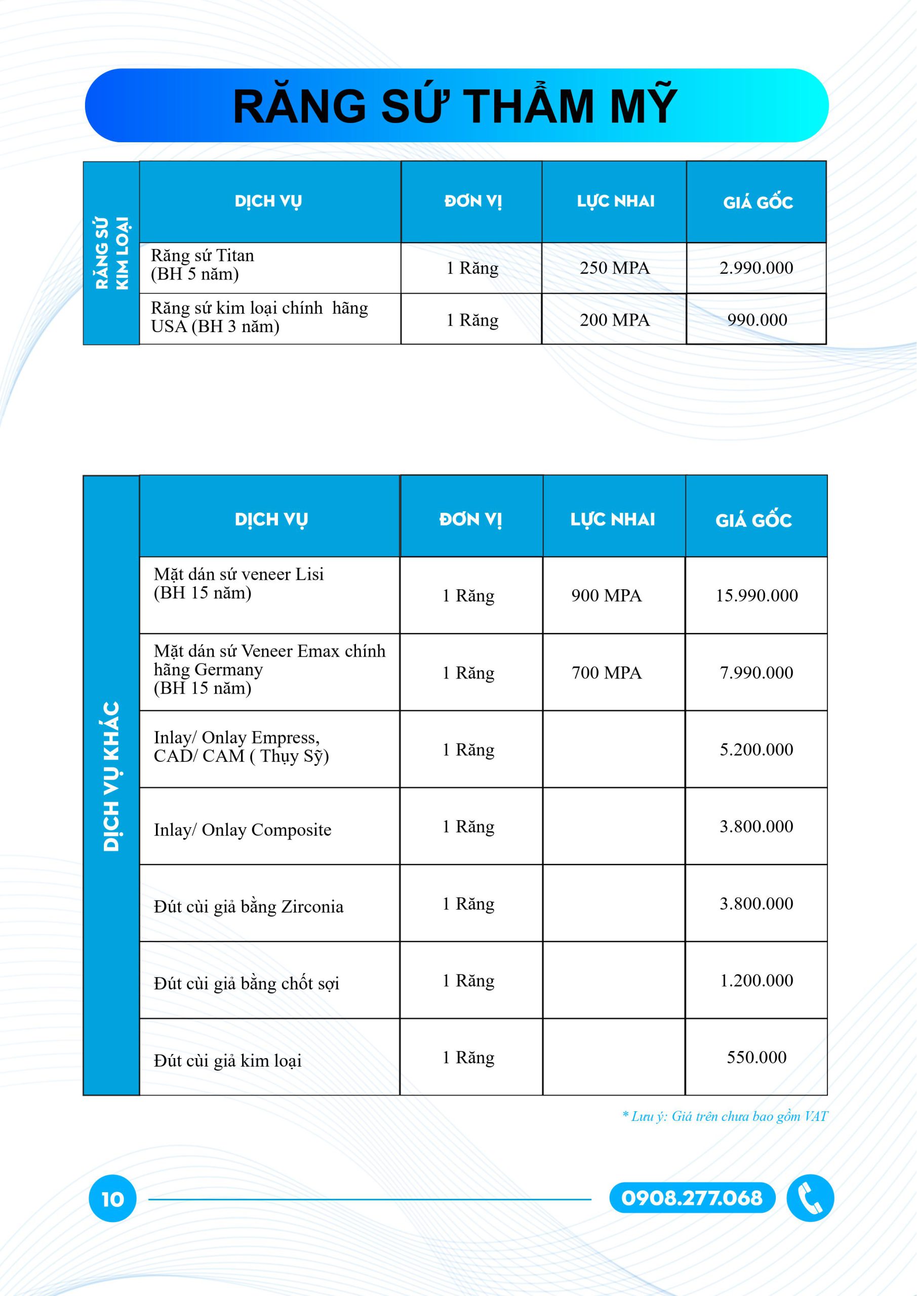 Bảng giá nha khoa cho người lớn